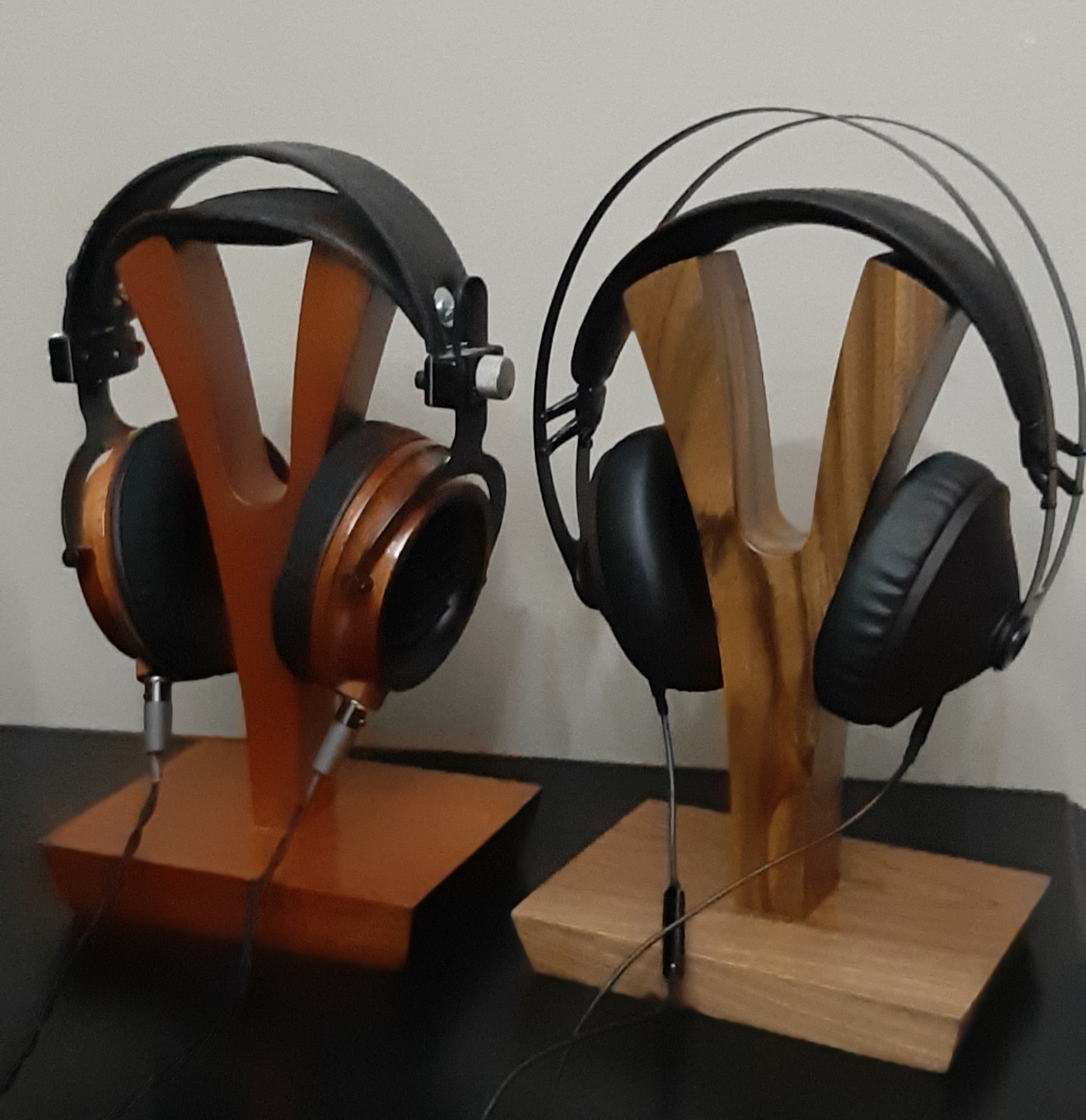 voici de superbes réalisations en bois pour que nos casques lorsqu'ils ne sont pas sur nos têtes soit bien mis en valeur .
