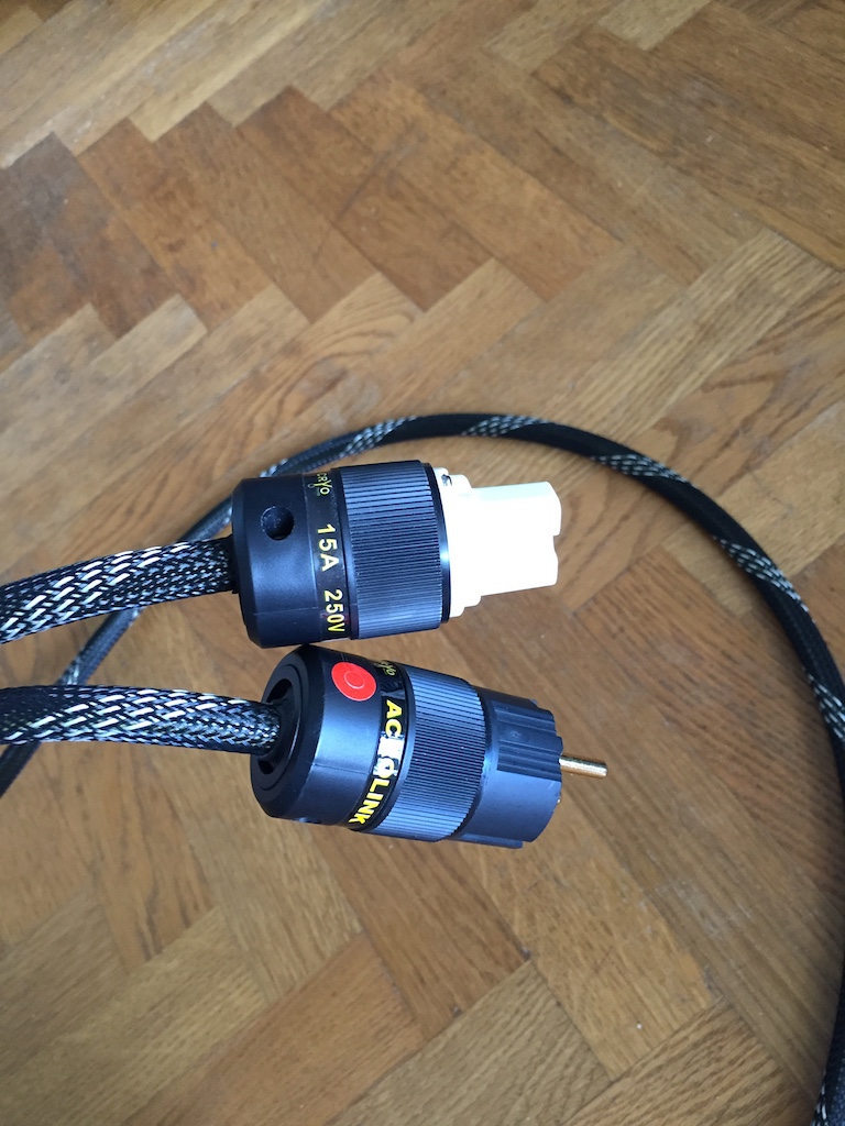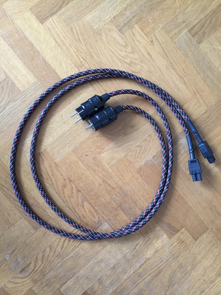 Câble en 2.5mm2 (je ne retrouve plus la référence ...), IEC et Schuko pseudo Acrolink, câblé en masse totale côté schuko. Gaine tressée standard. 1 pièce en 1.90m --> 20€ pièce