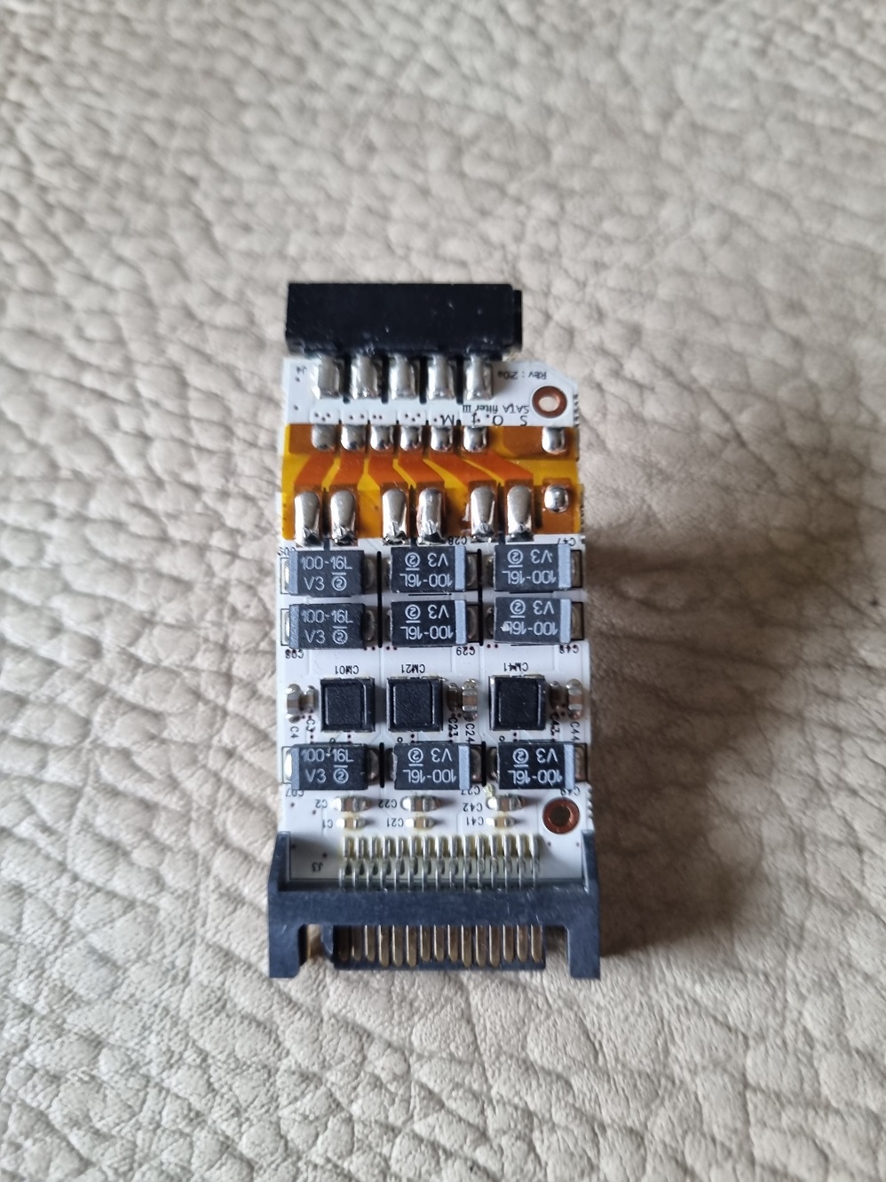 Se loge au niveau alimentation des HDD, ODD et SSD.