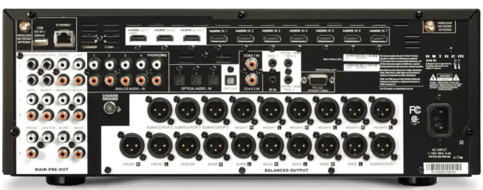 Quatre sorties subwoofer indépendantes sur l'AVM 90 permettent à ARC Genesis de corriger individuellement plusieurs caissons de graves pour la réponse en fréquence et l'alignement de phase.