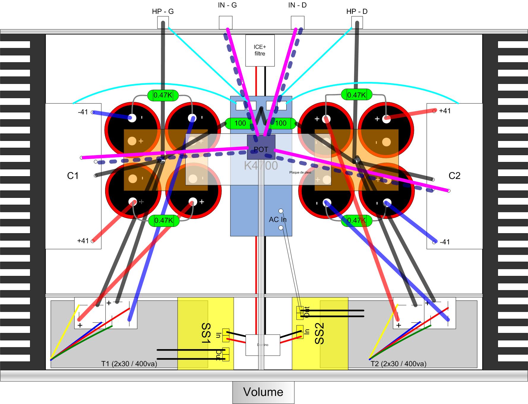 Je répète: nous sommes en double mono ! la cinch (si on fait abstraction du potar qui ne fait qu'interrompre le parcours), peut être reliée directement par le câble blindé à la carte ampli !
