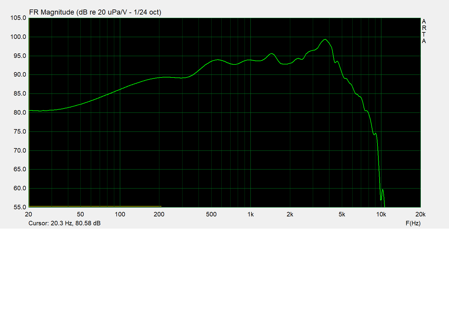 Alors oui, si on compare ses courbes à des hps hifi dont nous avons l'habitude. Ce coax avec un mid-woofer de 118cm² de Sd fait partie de la gamme pro et possède un excellent rendement, une suspension à très faible perte avec un Qms énorme de 16.4 (confirmé par le très haut pic d'impédance); d'ailleurs, au toucher, la suspension extérieure est extrêmement souple.