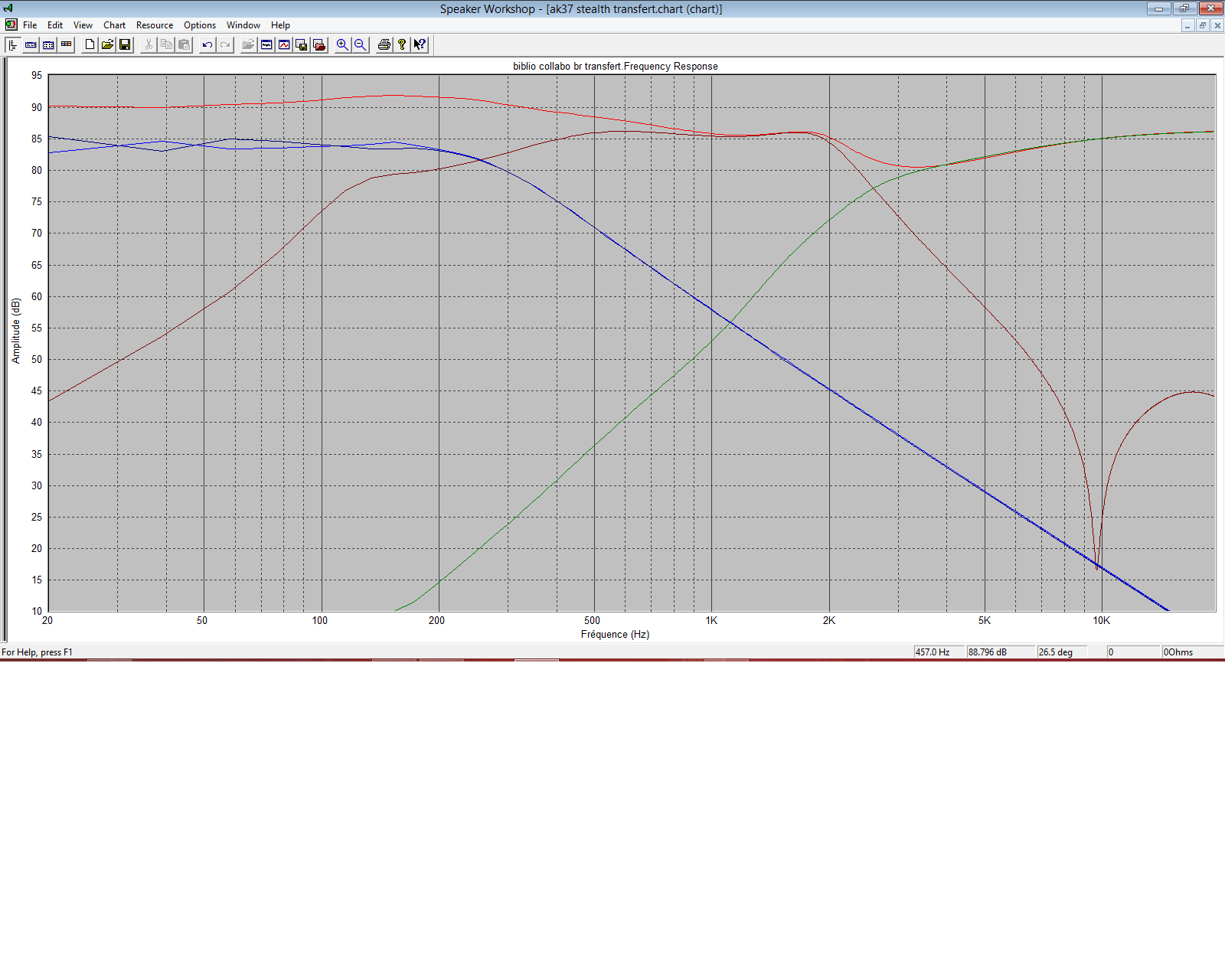 - J'ai particulièrement soigné la réponse en puissance, mais sans avoir eu besoin de trop modifier la linéarité de la réponse dans l'axe car les 2 Fx sont éloignées des problèmes de directivité des hps utilisés