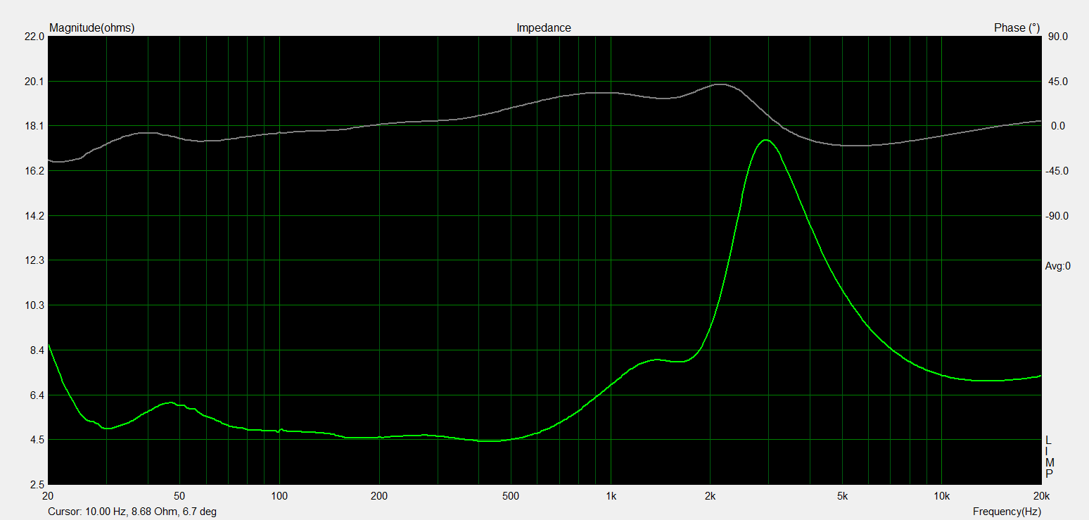 - choix de deux boomers de 21cm de 4ohm (3.22ohm réels) montés en série: le volume de charge pouvait être conséquent mais la largeur de la colonne contenue, donc pas de 26 ou 30cm; un médium metal efficient jusqu'à 200Hz imposait un 4ohm; un seul boomer de 4ohm aurait fait chuter la Z de l'enceinte trop bas; d'autre part, pour 1watt, on gagne 3.2dB avec 2 boomers vs un seul de 4ohm