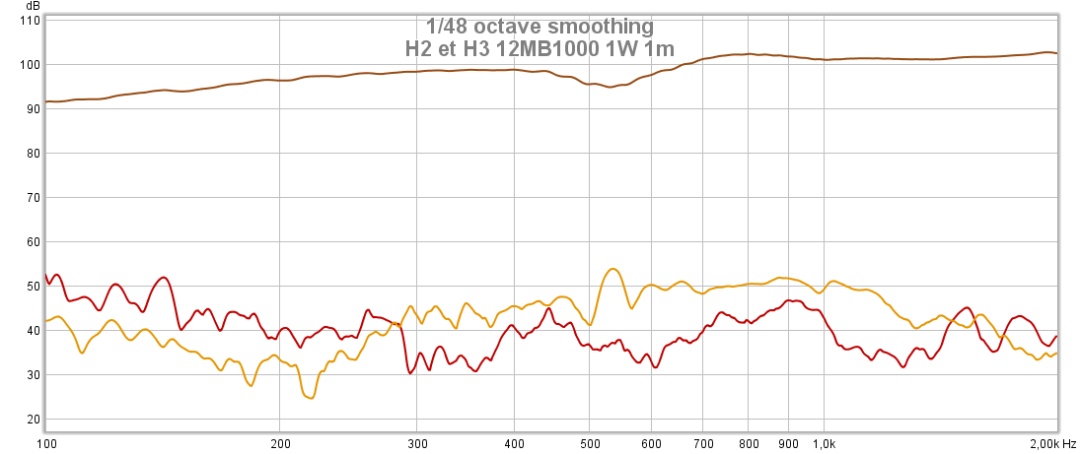 J'ai mesuré le 12MB1000, voici la mesure de distorsion, à 1W et 100W :
