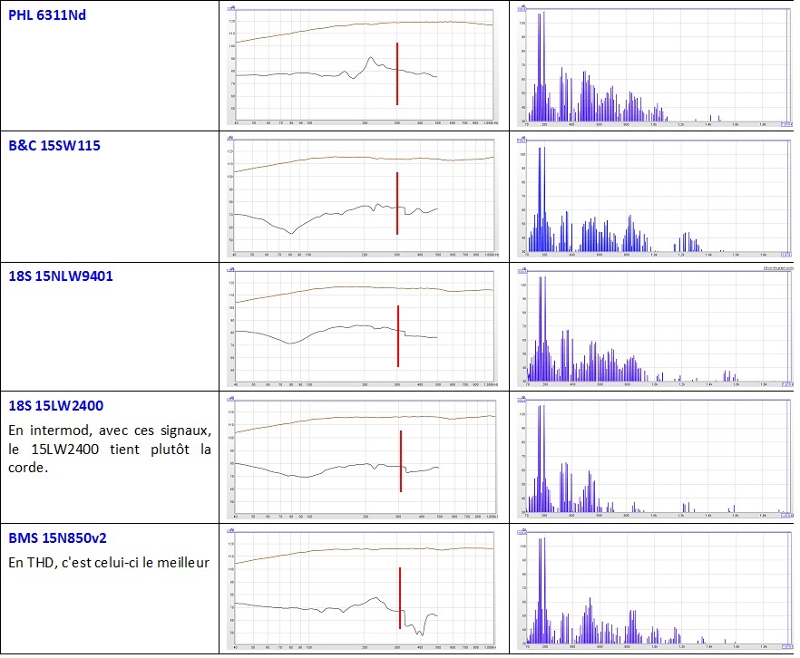Nous avons retenu le BMS 15N850v3, compte tenu notamment de sa linéarité native et de la régularité de ses courbes de distorsion. En matière d'IMD, compte tenu des effets de masque, il est peut-être aussi le plus performant.