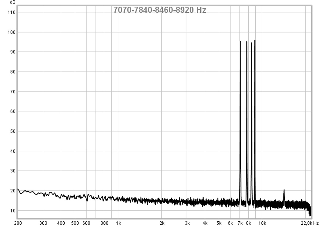 A titre de comparaison, j'ai retrouvé une mesure effectuée sur un AMT avec le même signal à 4 raies centrées sur 8 kHz, mais à un niveau SPL combiné de 110 dB environ, soit en gros 10 dB plus faible que sur le relevé précédent :
