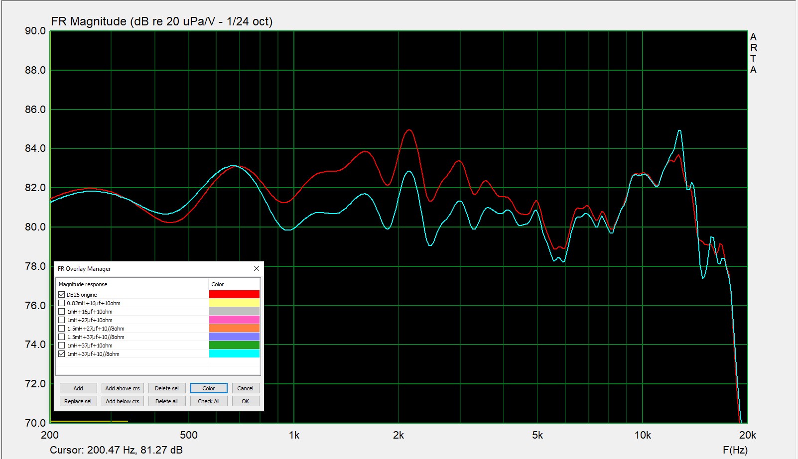 Voici les courbes des 2 enceintes mesurées avec les condos changé: