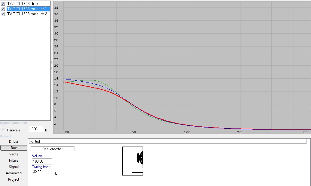 Le TAD 1603 c'est 180L avec un accord BR à 31-32Hz. J'ai un ami qui a des caisses ARAI agrandies à 180L avec cet accord, cela fonctionne super bien. De ce que j'ai lu c'est aussi le volume de charge des enceintes de studio Rey Audio