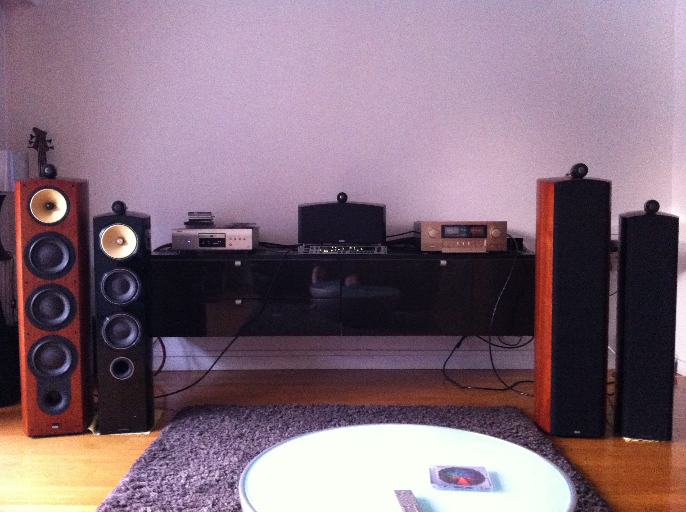 Ampli accuphase e460, enceintes BW 803d, convertisseur Berhingher ULTRAMATCH PRO src 24/96 (et oui..., j'y reviendrais dans un future comparatif entre accuphase dac 30, 3d lab dac 1000, lecteur accuphase dp500, lecteur cec tl 51XR en drive et en lecteur intégré), pc dell pour la musique démat Pièce de 28 m2 environ pas spécialement traitée mais amortie avec tapis tentures, canapé etc..., une pièce à vivre quoi.