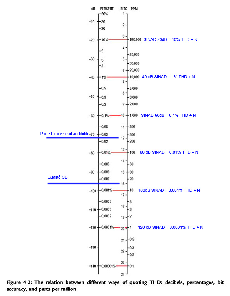 Donc, si SINAD est <0,05%, l'amplificateur n'est pas perçu comme ajoutant de fausses colorations au son.
