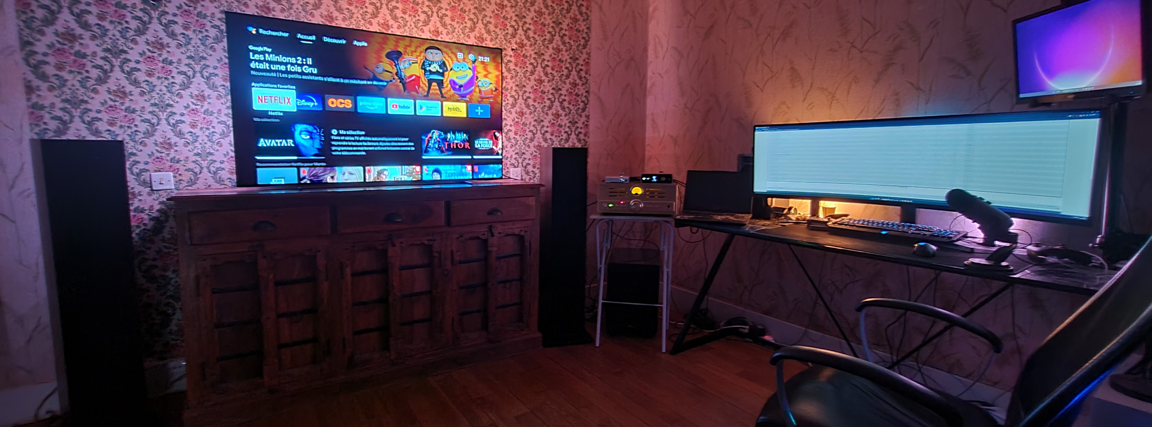 Mon PC est mon streamer qui est connecté à un DAC Denon DA 300 qui lui même alimente un ampli PIER 680 SE à qui lui sont connecté une paire de Triangle ANTAL EZ.