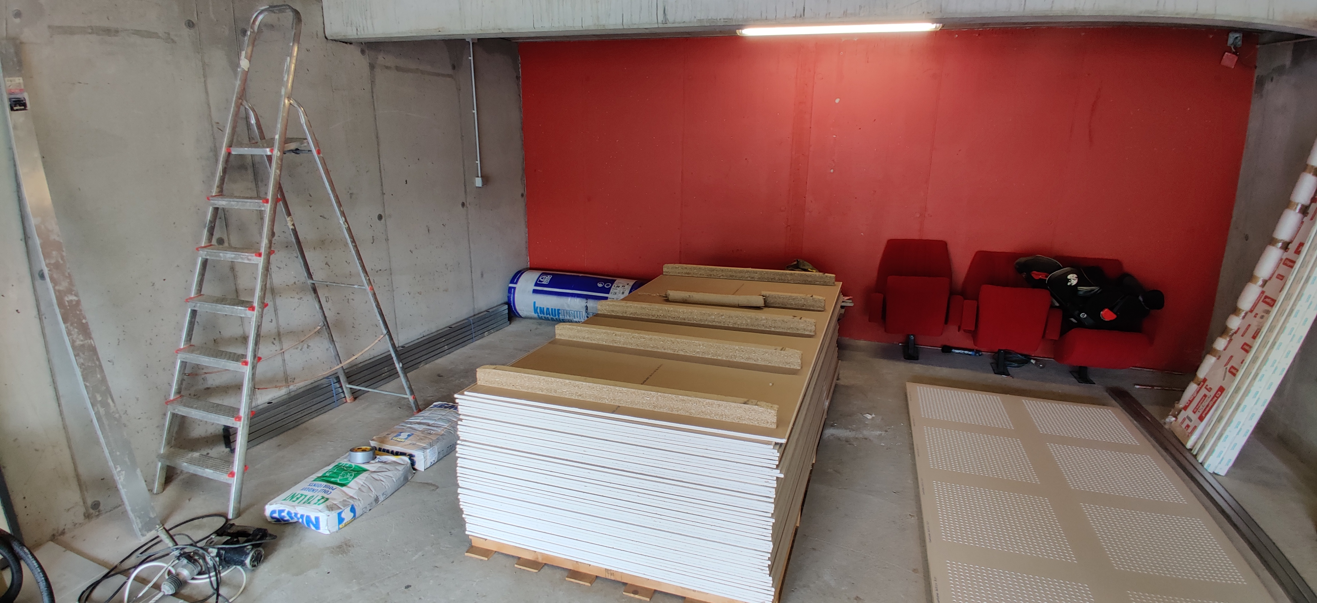 Les dimensions brutes de la salle seront de 390x540x233 (env. 21m2)