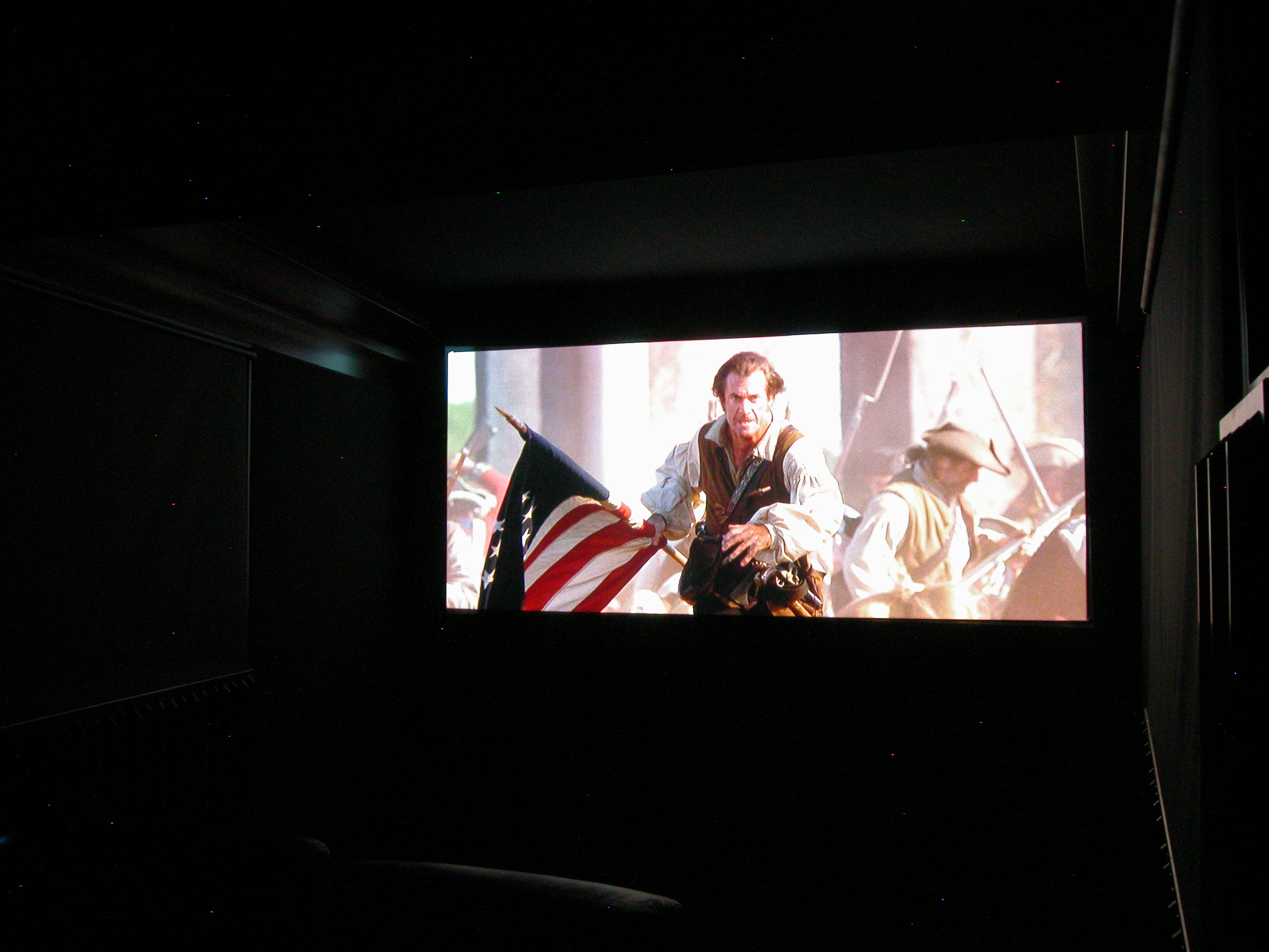 ensuite le passage du 16/9 au 2.35 transonore,Via une Isco2,un DVDO VP50,et une Clearpix2,sur un cadre alu et bords noirs velour
