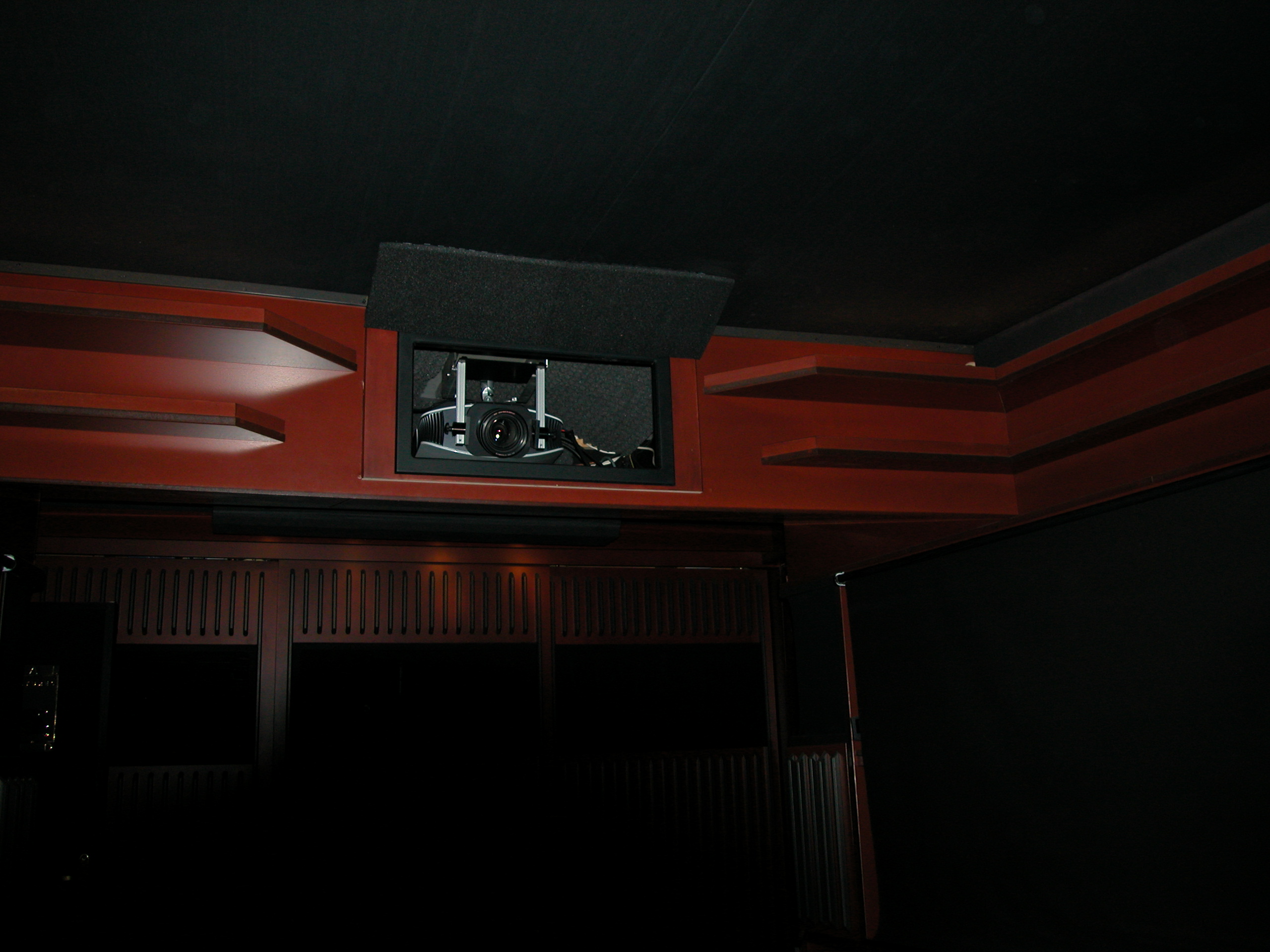 une gaine remonte dans les corniches lumineuses,et va alimenter en frais le caisson du TT,et l'extration retire la chaleur produite....,je vais bientot faire une derivationà cette gaine pour refroidir le meuble ou est le Dénon....car le bébé chauffe plus que son predecesseur