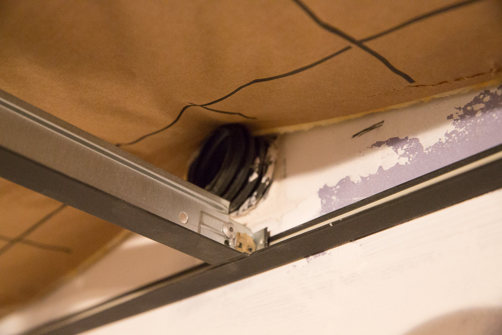 Si tu regardes la photo du plafond, je n'ai pas fixé les croisillons sur la dernière rangée.