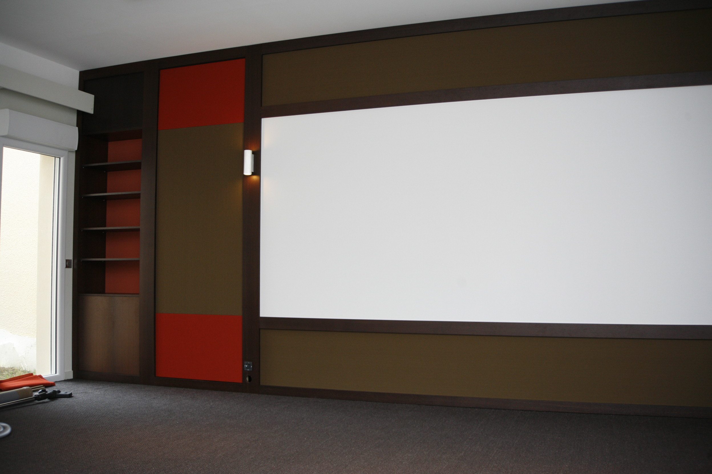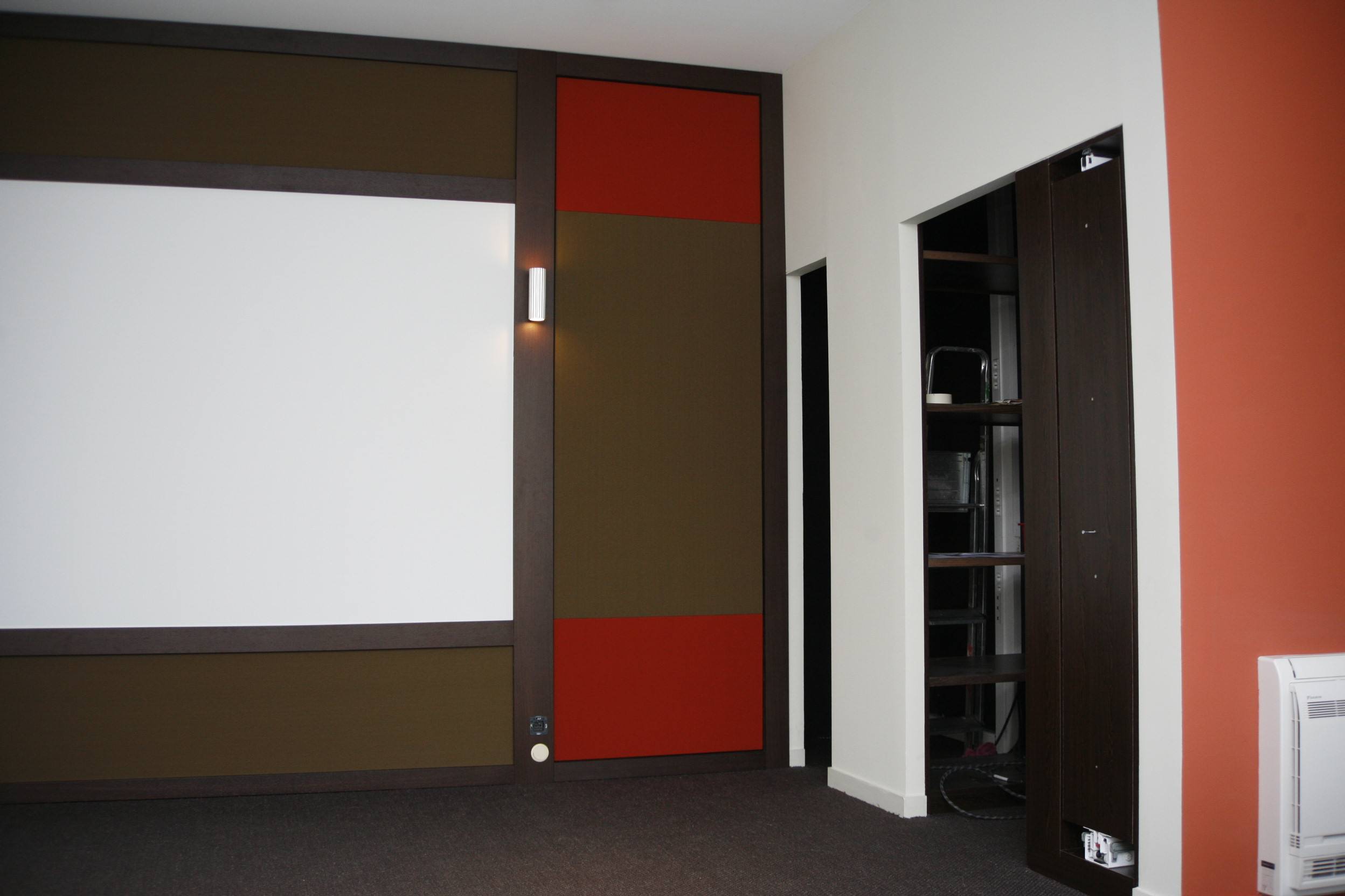 reste encore quelques détails de finition côté menuiserie (plinthe, prise et passe câble sur montant), mais surtout les portes coulissantes du local et la finition du placard tout en wengé.