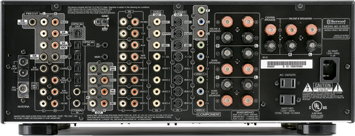 Amplificateur Audio Video Sherwood R-963. Marqué du sceau de la qualité et de la puissance, ce Sherwood Newcastle bénéficie d’un rapport qualité/prix exceptionnel, jugez plutôt: 7x140W, DTS, DTS-ES, DTS-Neo6, Dolby Digital, Dolby Digital Surround EX, Dolby ProLogic I et II, décodeur MPEG-2, convertisseur 24-bit 192 kHz, détection automatique du format. DSP 7+1 à partir des sources numériques AC-3 ou DTS, entrées et sorties “Composantes“ (YUV / Y, Cr et Cb), 6 entrées audio numériques (2 Coaxials et 4 optiques), entrées évolutives (8), 9 sorties préAmp dont 2 sorties Subwoofer. 12 modes DSP, menu OSD, mode Multi-Room, et livré avec deux télécommandes préprogrammées (l’une programmable à cristaux liquides et l’autre destinée au mode Room 2).