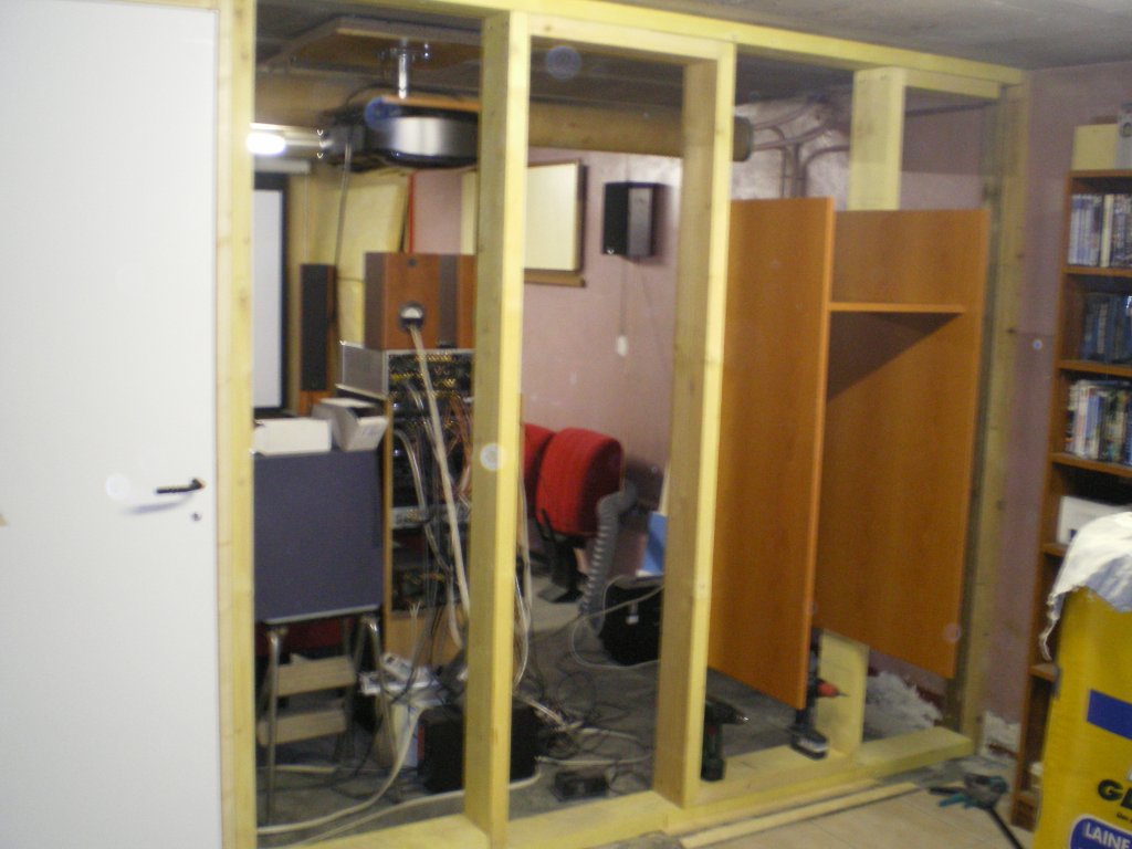 La salle est en fait déjà en fonction depuis quelque temps, et maintenant est venu le temps de faire la cloison de séparation et de commencer le traitement acoustique et l'agencement.