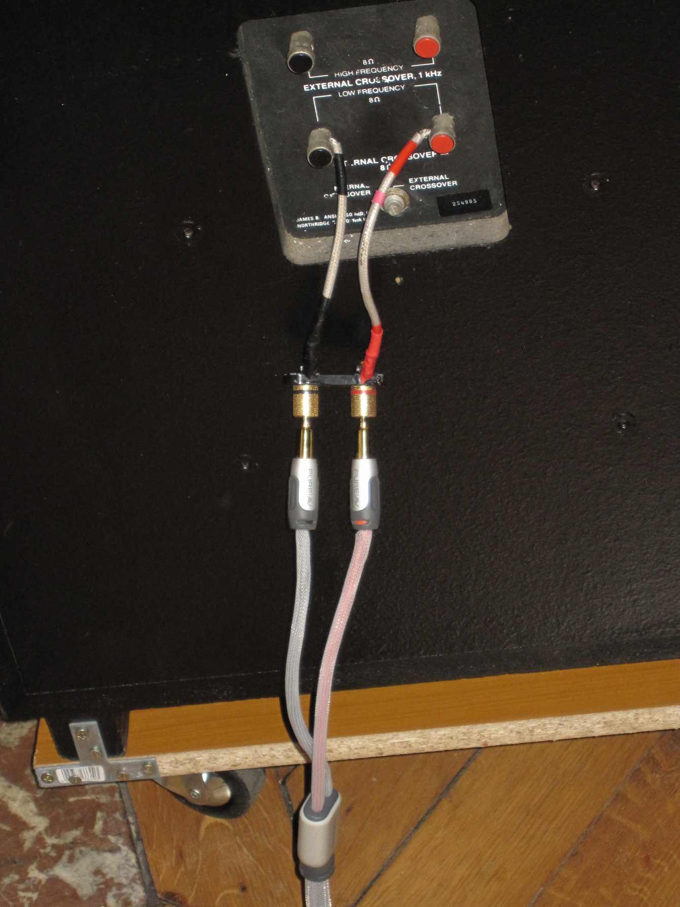 quand j'ai acheté , à l'époque , les JBL 250 TI LE de Noir , il m'a vivement recomandé de faire 2 ptis bout de cable HP en guise se strapps ...