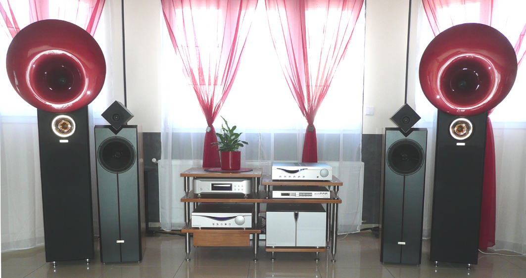 Depuis quelques années, le constructeur allemand de Duisbourg développe une nouvelle ligne d'enceintes pour laquelle le registre médium est toujours reproduit par un driver chargé par un pavillon circulaire, mais ce dernier n'est plus symétrique. L'embouchure du pavillon asymétrique n'est pas situé en son centre.