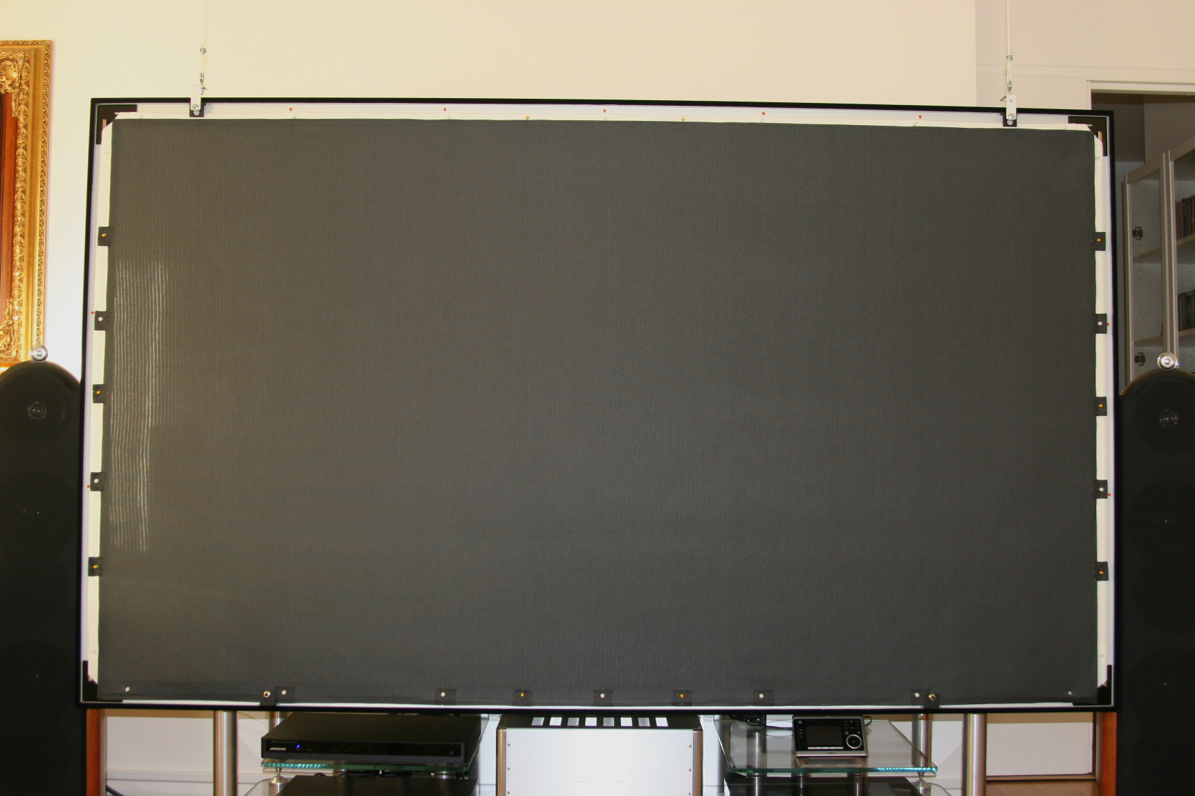 C'est encore plus vrai lorsque l'on souhaite une bonne planéité de la toile (donc tensionné), des bandes noires sur la toile de projection et un dos noir vu que l'arrière de l'écran ne peut être traité contre les réflexions parasites.