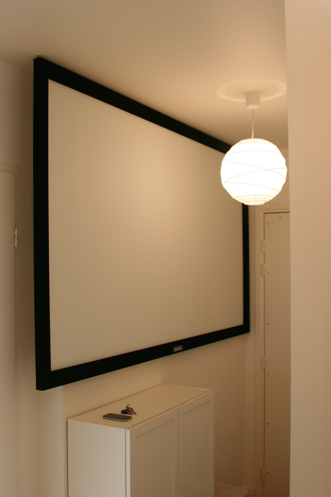 Après avoir fait le tour de mon appartement, le mur du couloir se trouvait tout indiqué pour ranger l'écran. 8)