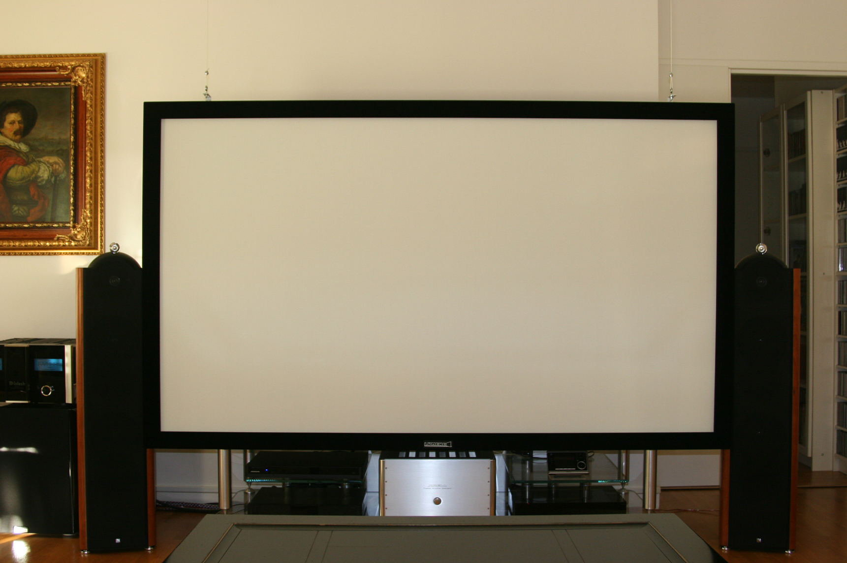 Sachant qu'à terme je déménagerai pour plus grand, il était hors de question de dépenser une telle somme dans un écran dont la base ne pourrait dépasser 2.34m et qui s'avérera trop petit pour l'avenir.