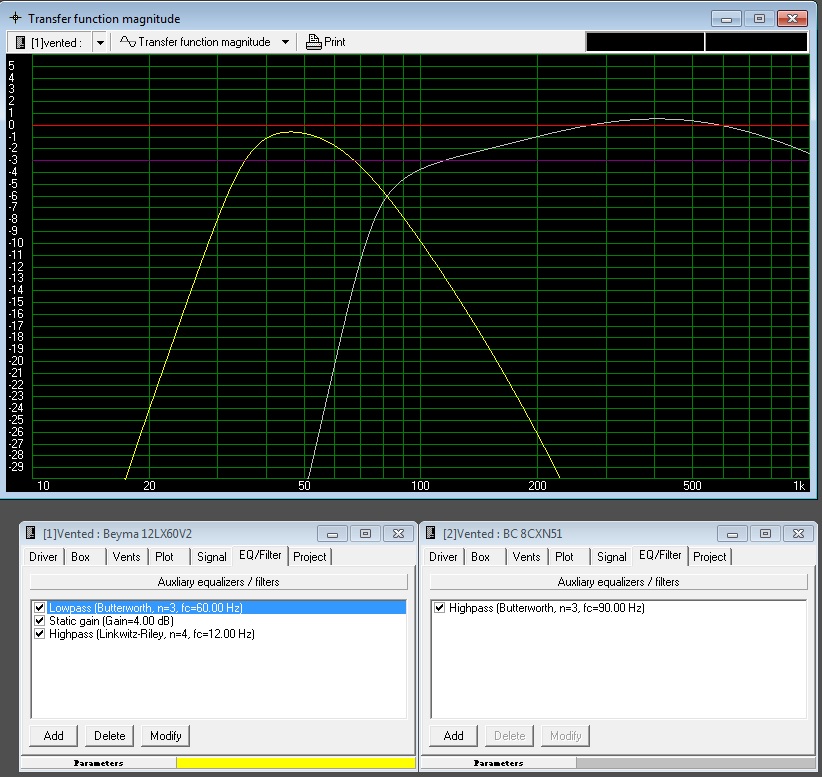 J'ai entré les paramètres de son module hypex : à savoir un subsonic à 12Hz 24db