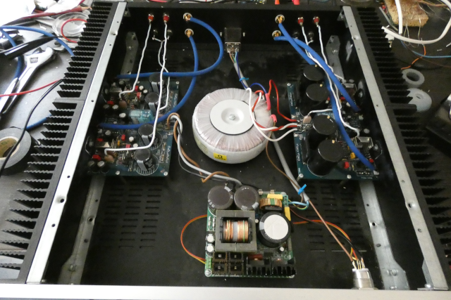 , mais ai rajouté une alim linéaire pour un des modules stéréo , l'autre reste avec l'alim SMPS. ( alim linéaire pour les compressions et SMPS pour les basses)