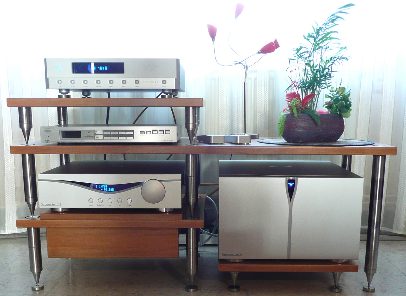 L'alimentation est toujours confiée à l'ensemble AUDIA Strumento 1 & 4 ; la source CD/SACD/DAC est l'Esoteric K-07.
