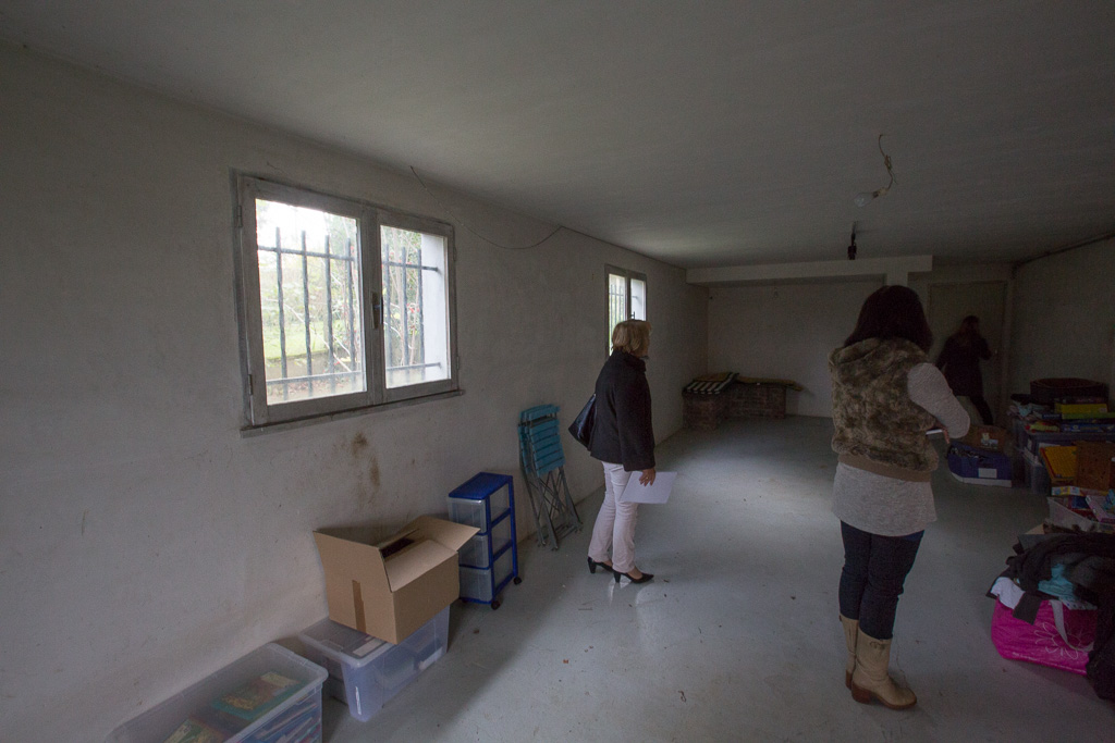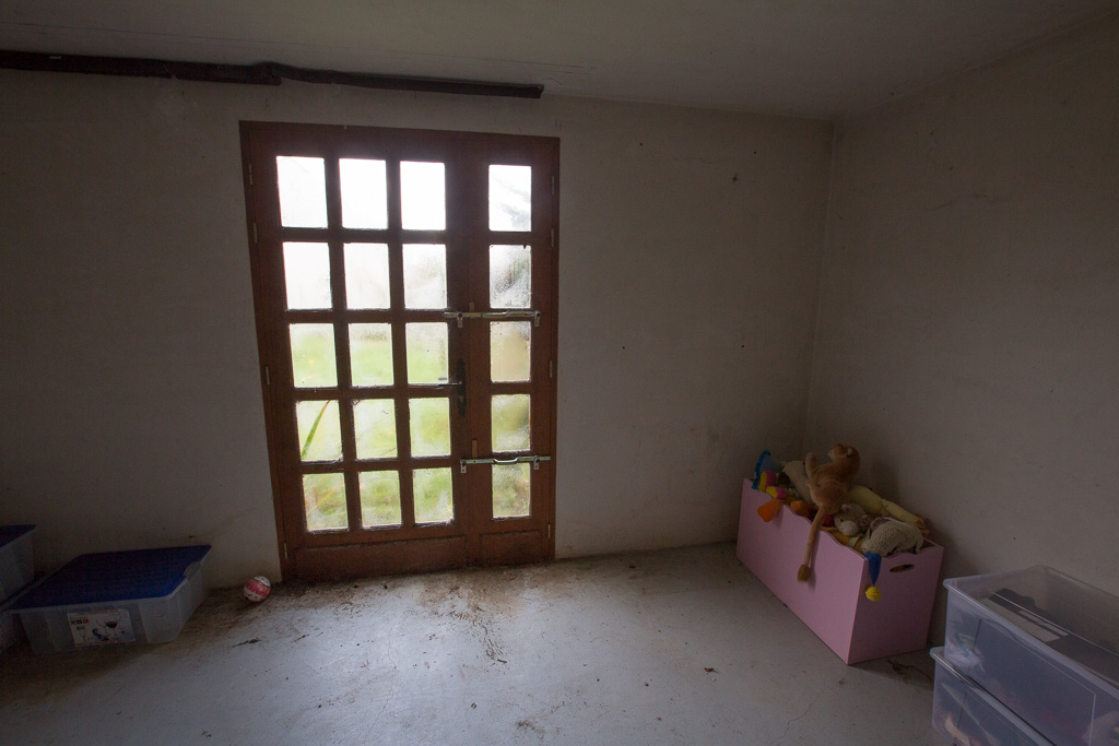 La porte fenêtre qui existait au bout de la pièce est maintenant condamnée (parpaing de 20).