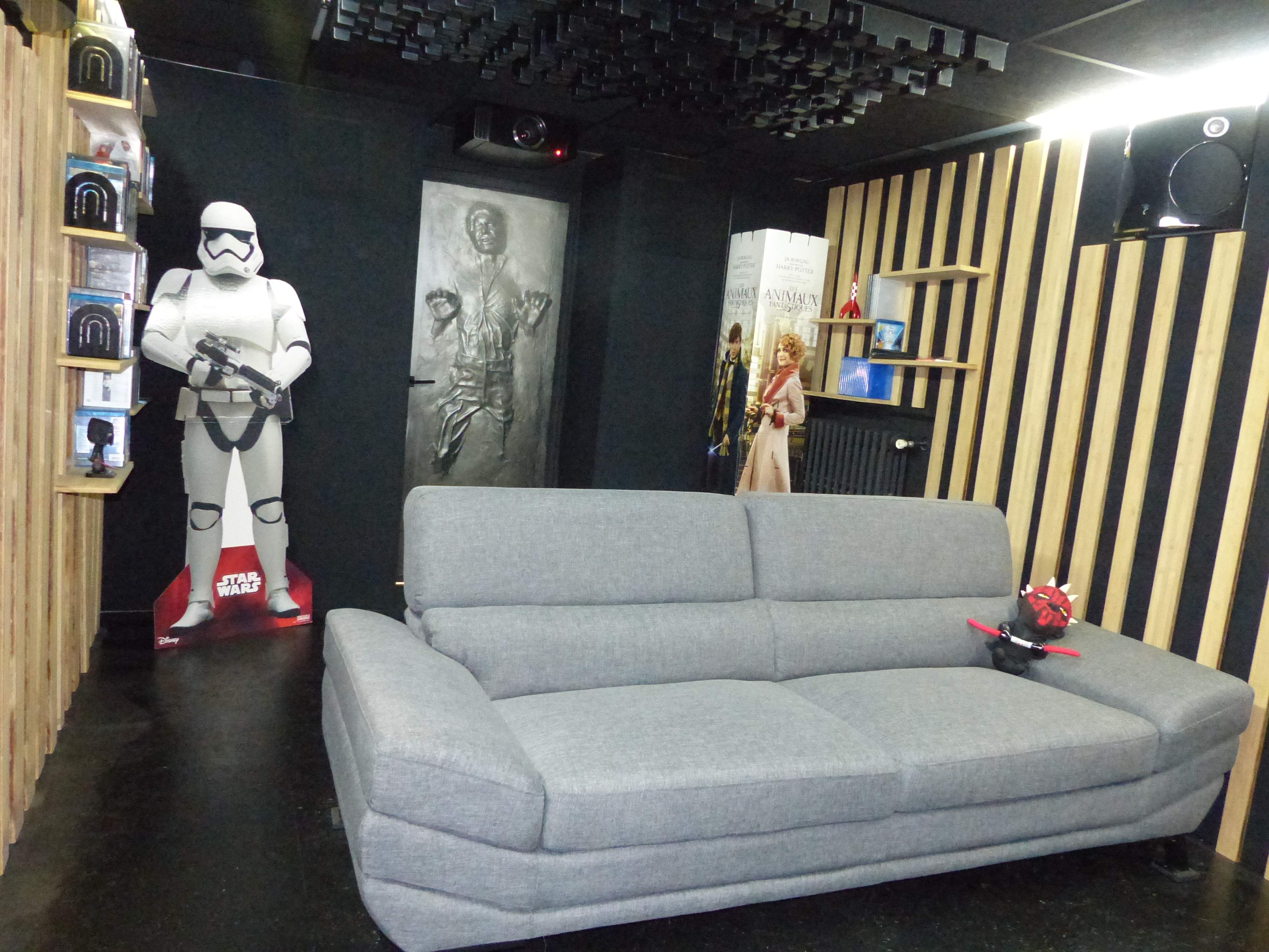 Mais la pièce est toute en longueur (6m85x3m35), avec une porte-fenêtre et ça résonne pas mal.