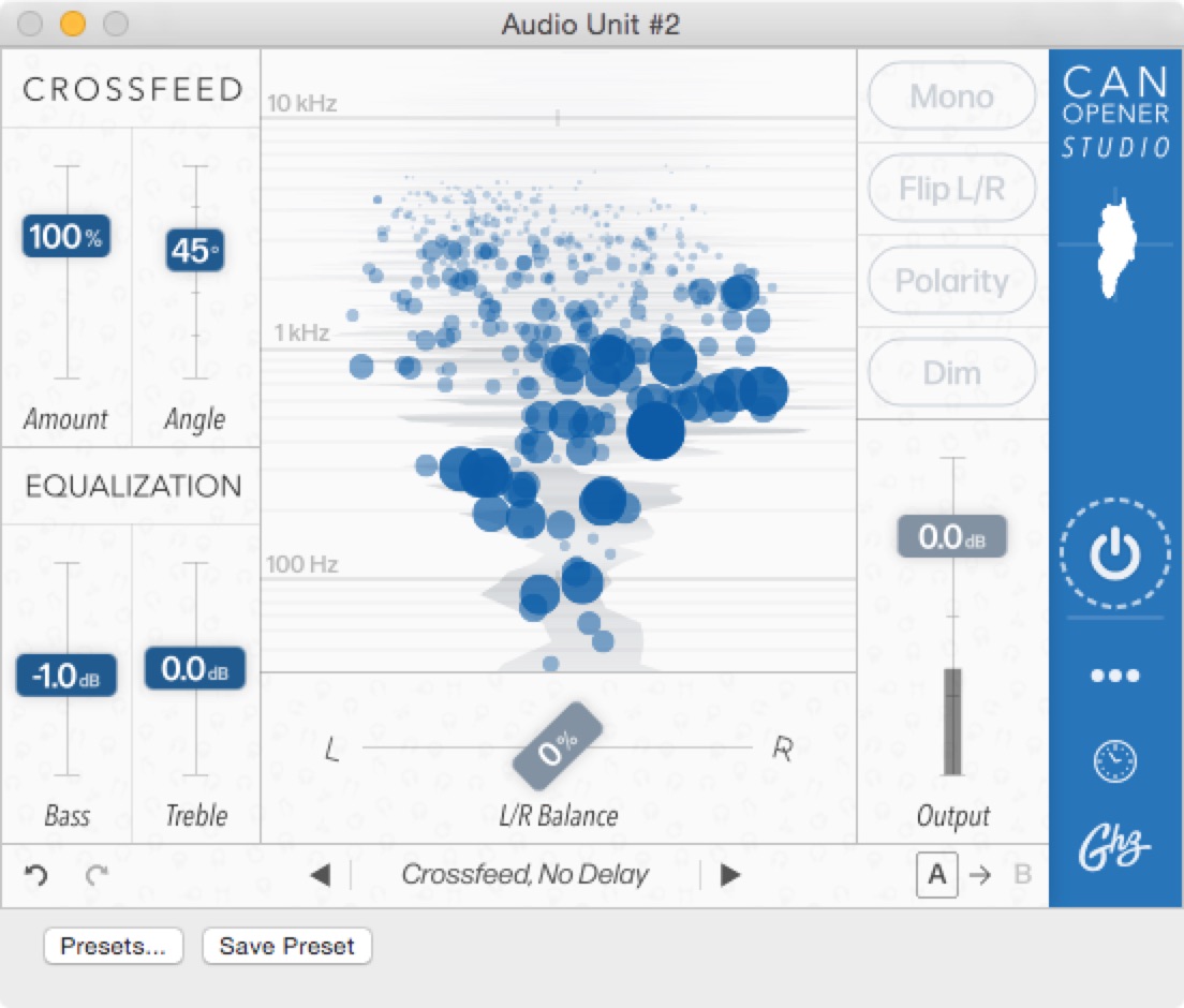 Comme je l'ai souvent dit, la plupart des softs de crossfeed, car c'est bien de cela dont il s'agit, que j'ai testés apportaient trop de dégradation au signal. Celui-ci me semble particulièrement transparent et ne modifie pas trop la réponse fréquencielle. Il agit sur le delay et le crossfeed. Je l'utilise depuis quelques jours et je trouve ça vraiment très chouette, surtout pour les films. Attention il n'y a pas d'émulation HRTF ici, donc pas de rendu 3D comme le smyth, juste un rendu plus frontal avec du recul, comme aux enceintes. C'est plus convaincant que le waves NX, qui simule une ambiance de piece rajoutant des réverbérations inutiles et nuisibles, là on garde un maximum le signal source.