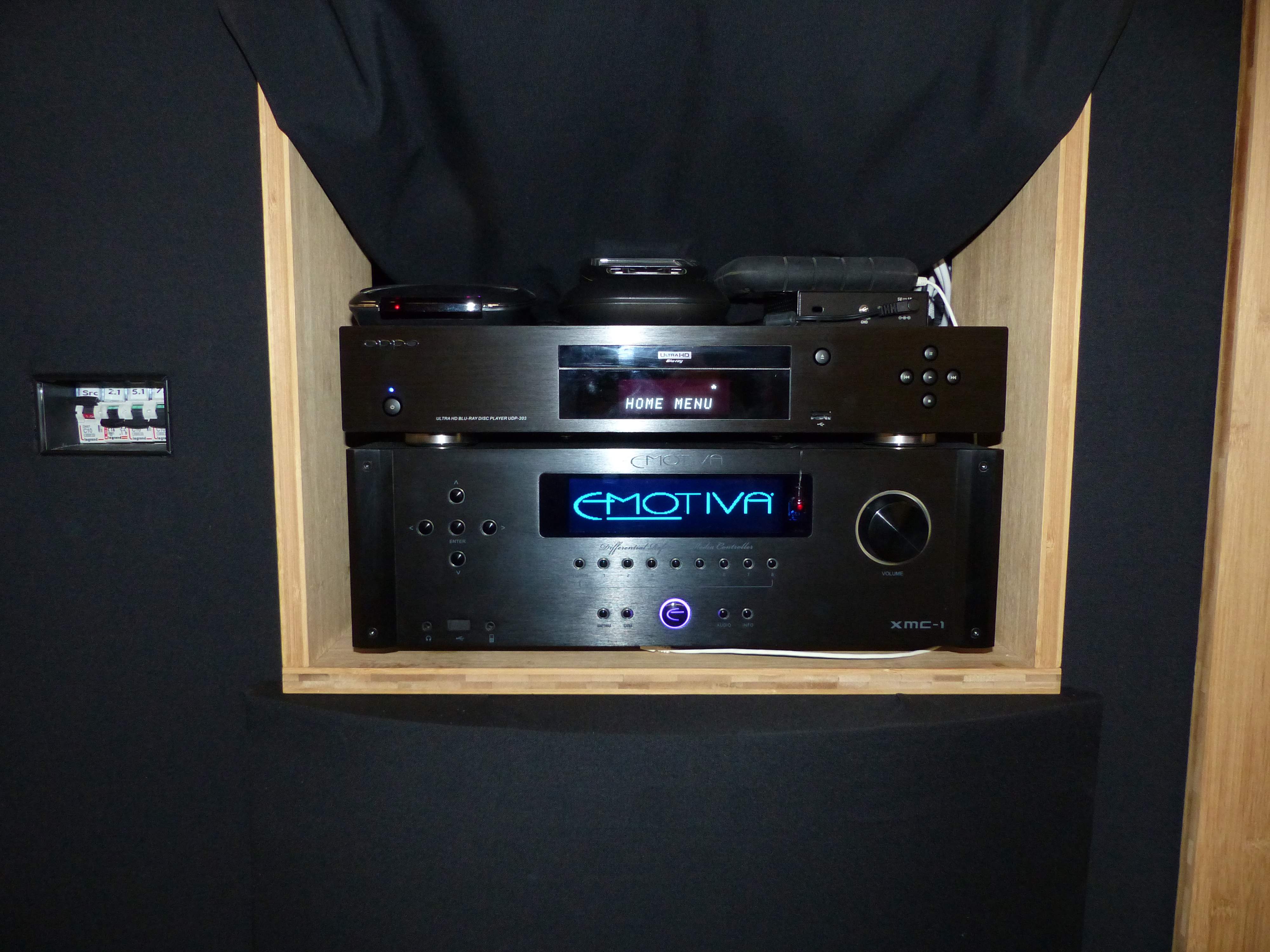 Mais côté matériel, il y aura toujours des évolutions. L'Oppo 203 tweaké Coris est tout récent. Je vais certainement profiter de l'upgrade proposée par Emotiva pour le XMC-1 vers soit un XMC-2, soit un RMC-1. Côté surround, je ne vois pas d'évolution possible, je suis déjà équipé "grand luxe" (pour des surrounds). Du côté de la scène frontale, on peut toujours faire mieux ! Soit d'autre monitor plus HdG soit du sur mesure (HR adapté à ma salle - Y'a de l'excellent chez JBL mais ça rentre pas dans 3m20 de large avec les Sub).