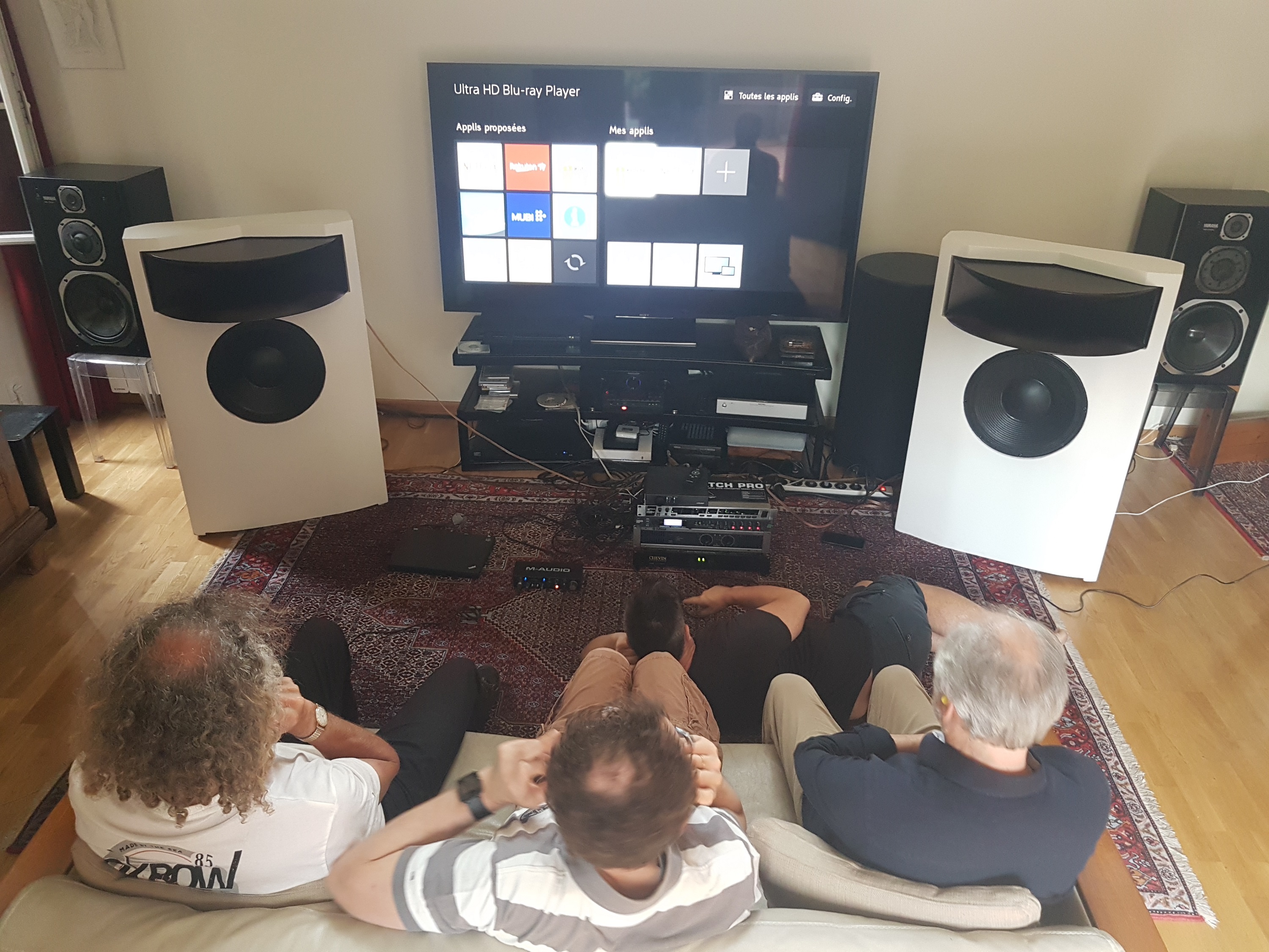 Étaient présents outre SB10, Jean-Louis contrebassiste amateur, qui aidé aux réglages du grave, Bruno un voisin Hifiste (enceintes Ellipson) .