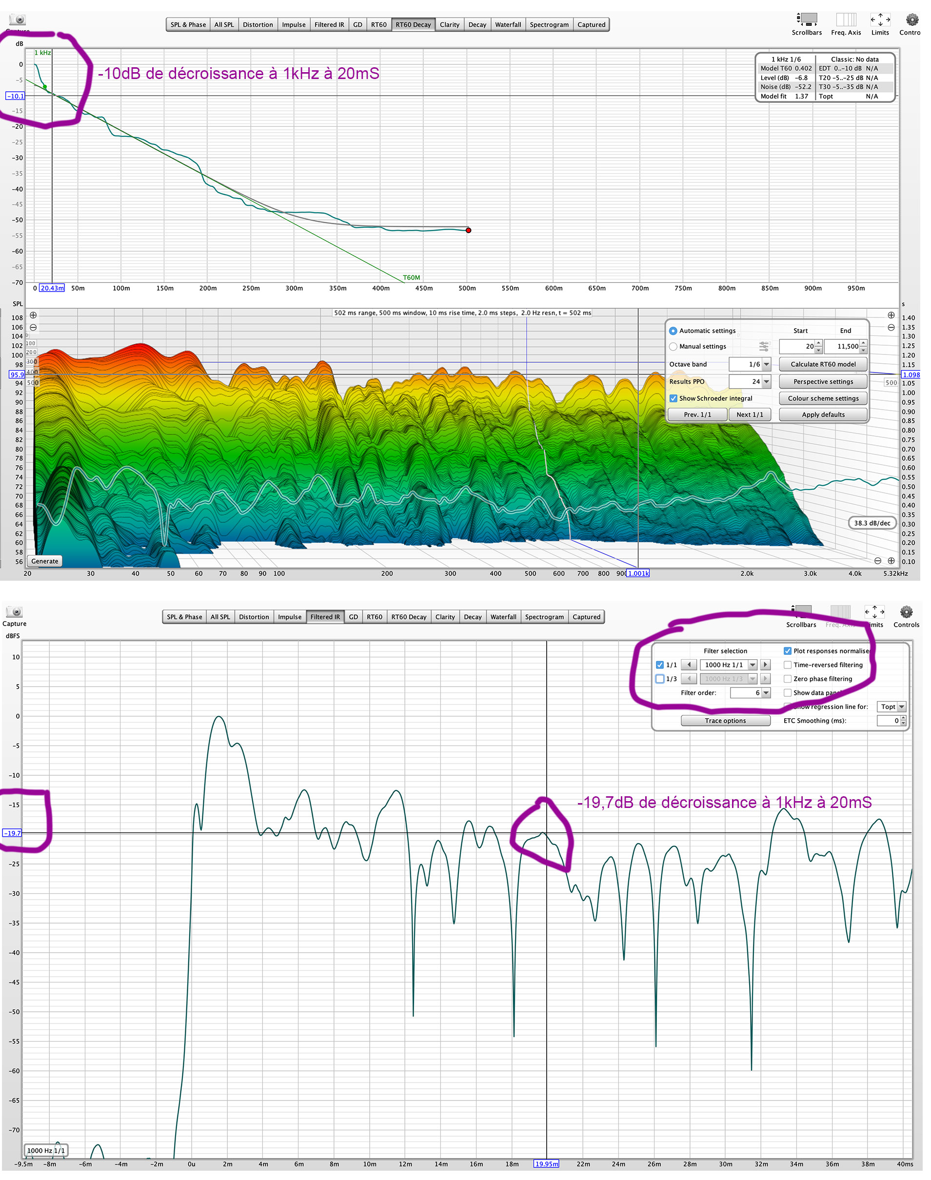 Le RT 60 decay c'est un visuel (édit de 11h02) proche de l'intégrale de Schroeder, mais permettant la résolution au Hertz