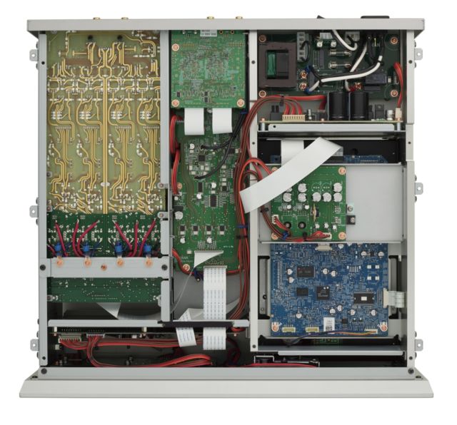 Mais le spectacle de l'intérieur ne donne pas la même impression d'ordonnancement net et rigoureux qu'on voit sur un Accuphase DP 570 ou DP 770 et un Esoteric K-03 ou K-01 .