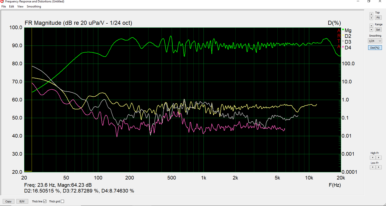 Les distos sont contenues à 90dB/1M, comme à 96dB. Le bas-mid et l'aigu sont particulièrement clean.