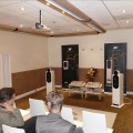 Pour accompagner cette démo JVC s’est fait prêter un fabuleux processeur audio Lyngdorf MP-50 capable de tout faire. L’amplification numérique Lyngdorf également présente, a permis de créer un environnement sonore des plus performant malgré une mise en condition peu favorable limitée par les contraintes typiques d’un salon.