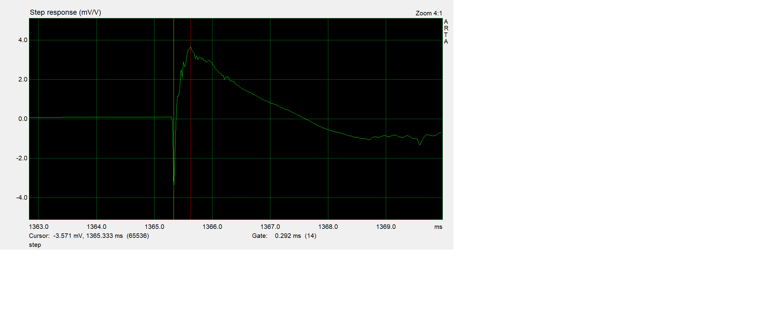 - Enfin, le STEP montre la très belle réponse typique d’un 6dB/oct acoustique, avec, ici, la polarité inversée du tweeter.
